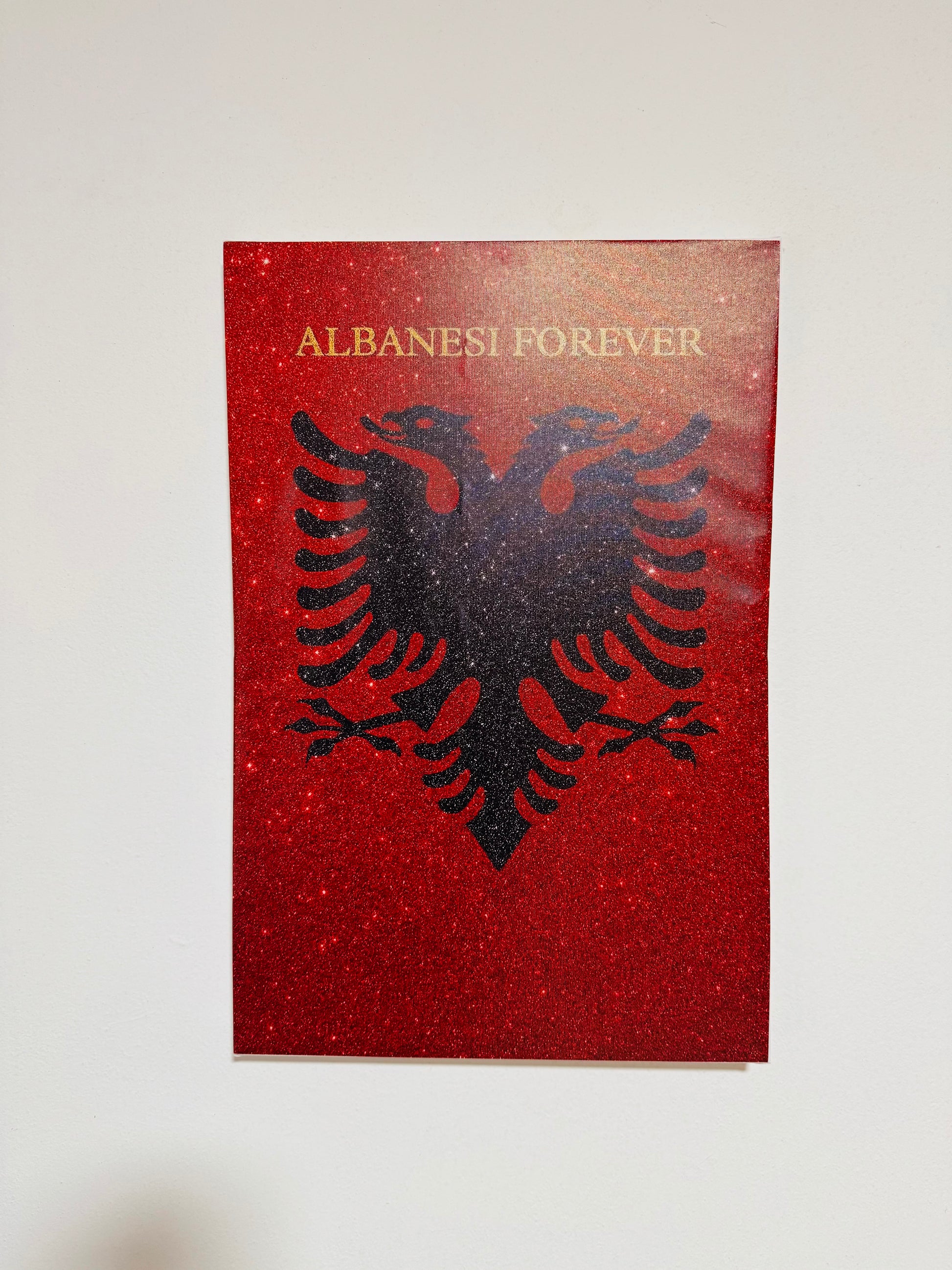 Stampato su tela con finitura lucida e montato su telaio, il quadro è pensato per donare forza visiva e significato a ogni ambiente: perfetto per spazi moderni, studi personali o luoghi di ritrovo della comunità albanese.