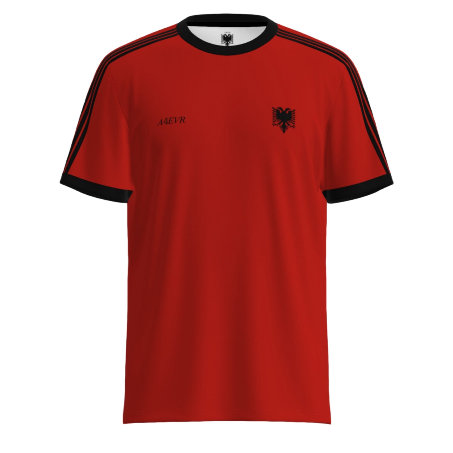 Design minimal, anima ribelle. Il rosso intenso e i dettagli neri rappresentano l’orgoglio kuqezi, mentre il logo con l’aquila a due teste e la scritta "A4EVR" raccontano chi sei, ovunque tu vada.