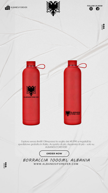 Non perdere l'opportunità di unire funzionalità, stile e patriottismo con la nostra Borraccia Termica 1000 ml. Acquista ora e vivi ogni goccia di idratazione con l'anima albanese!