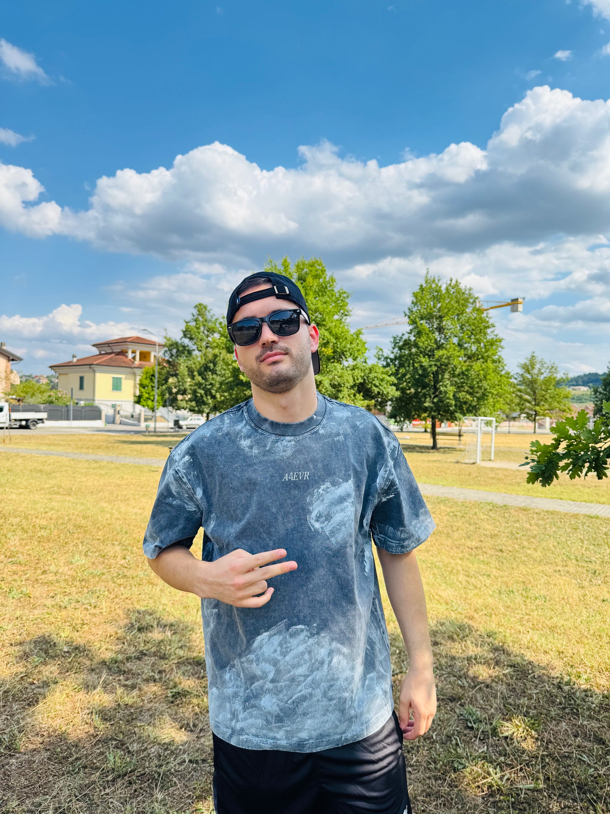 Realizzata in cotone pesante con effetto washed nero/grigio, presenta il logo A4EVR ricamato al centro, simbolo di appartenenza e resistenza.